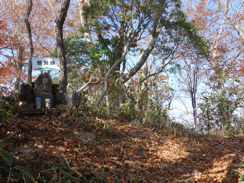 普賢峰山頂。樹間から展望がある。