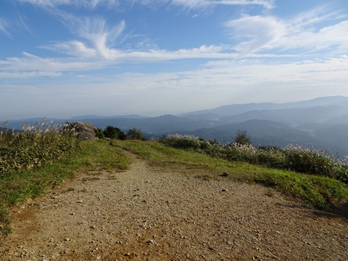 上宮からやや急登となる。登っていくと徐々に樹間などから展望がある。山頂手前になると緩やかな登山道となる。